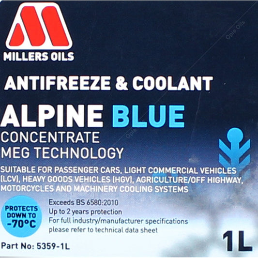 Millers Oils Alpine Blue Antifreeze & Coolant Concentrate